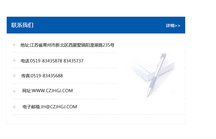 傳真:0519-83435688    郵編:213135    網址:WWW.czjhgj_com.hjphjr.com    電子郵箱:JH@czjhgj_com.hjphjr.com